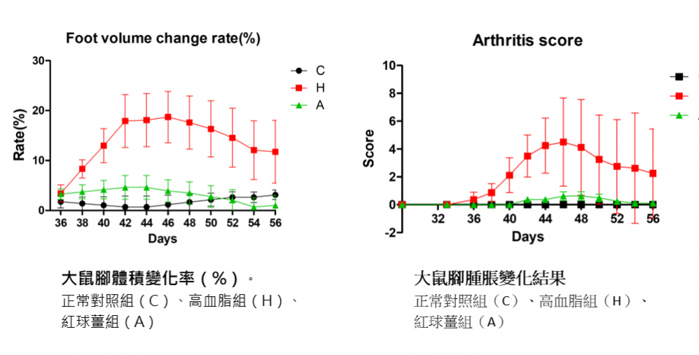 同時改善高脂飲食造成的肝功能異常(AST/ALT) ,並減輕發炎與腫脹,展現肝保護與抗發炎功效。